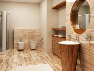 Až donedávna bylo dřevo používáno pouze v místnostech, jako jsou kuchyně či ložnice. V současné době se stále více používá i v koupelnách. Dřevo na podlaze koupelny je mnohem teplejší než dlažba nebo kámen. Speciálně připravené dřevo pro vlhké místnosti je vysušené na optimální vlhkost 8 % a je navíc pokryté voskem nebo impregnované. Velmi dobře se na této podlaze chodí na boso. Teplejším materiálem je korek, který lze pořídit v podobě panelů a dlaždic. Tento přírodní materiál je odolný vůči plísním a vytváří akustickou a tepelnou izolaci. Jedná se o cenově dostupné řešení, nicméně náročné na údržbu. Je potřeba materiál pravidelně impregnovat a setřít každou kapku vody, která na podlahu dopadne.
